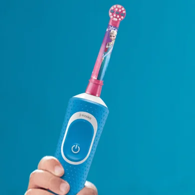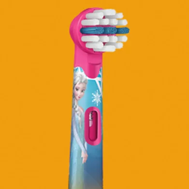 Met de Oral-B Kids elektrische tandenborstel voor kinderen vanaf 3 jaar kunnen kinderen plezier beleven aan Disney Frozen én profiteren van de milde, effectieve reiniging van een door tandartsen aanbevolen tandenborstel van Oral-B. Met een unieke, kindvriendelijke gevoelige modus reinigt deze borstel de tanden van kinderen voorzichtig. Hij verwijdert meer tandplak dan een gewone manuele tandenborstel. Er zitten vier leuke Disney Frozen-stickers bij om het handvat mooier te maken.